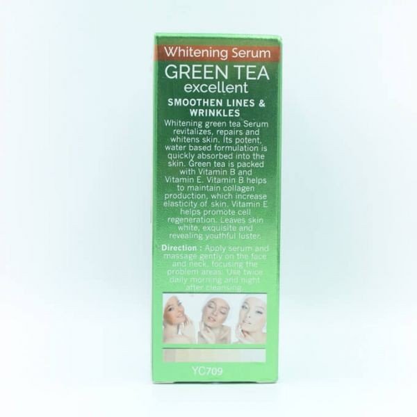 Whitening green tea serum revitals, repairs and whitens skin. Its potent, water based formulation is quickly absorbed into the skin.